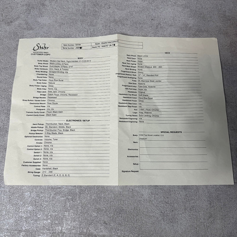 Suhr Modern Set Neck Custom Select Quilt Top Black Limba Body & Neck 【加古川店】